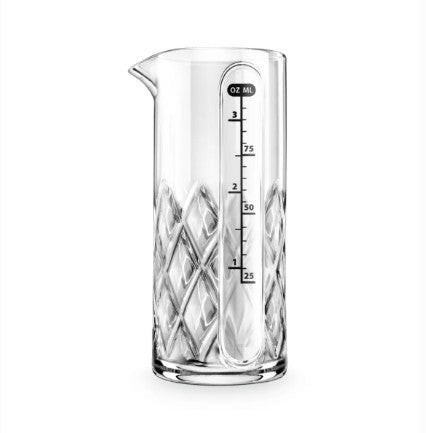 Mix the perfect cocktail! Marked with ounce and milliliter increments, use this Yarai Jigger when mixing your favourite cocktails. The spout allows for easy pouring into glasses or mixing vessels without messy drips. Made with heavy thick walled glass and a classic Japanese Yarai weave-pattern.